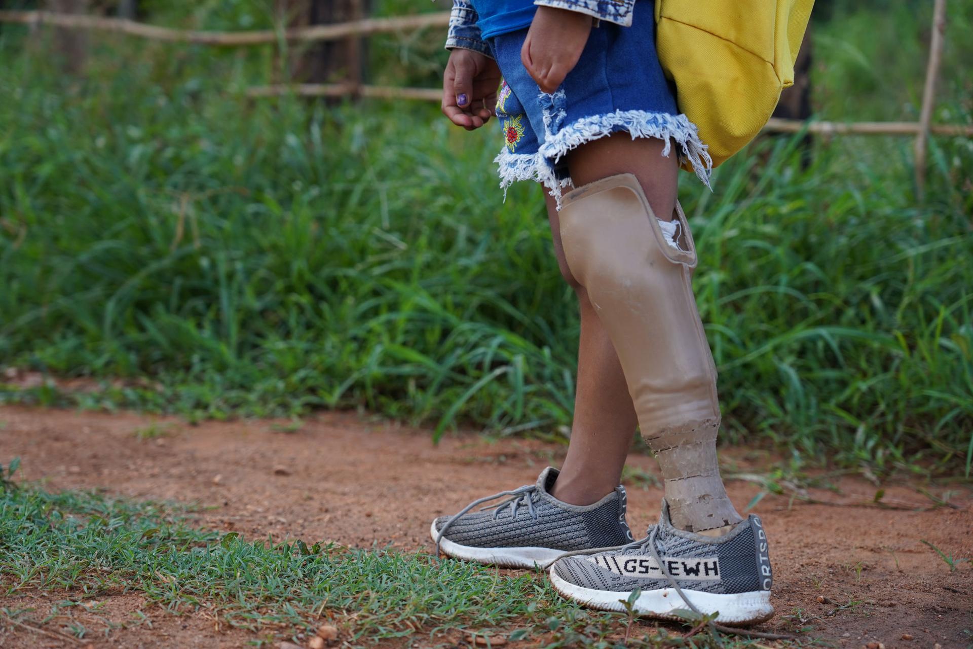 Six-year-old Samnang is funny, outgoing and loves to play. However when she began school a couple of years ago, the other children teased her because she was born with one arm and one leg.